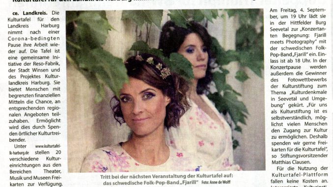 Die Kulturstiftung spendet 2 X 2 Karten für das Fjarill Konzert in der Burg Seevetal. Die Karten gibt es bei der Kulturtafel des Landkreises Harburg